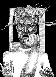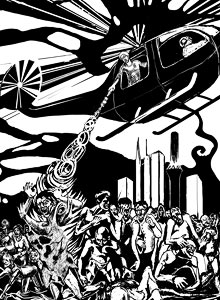 Stál som zoči-voči jednému z trojice. Zlostne na mňa gánil skleneným zrakom... Chvíľu sme na seba hľadeli, keď na mňa zrazu namieril zbraň podobnú pištoli. Inštinktívne som vystrel pred seba päsť. Skôr, ako sa dotkla hlavy toho darebáka, ozval sa tlmený výbuch. Netvorovi v pravom zmysle slova vybuchol mozog a kúsky šedivej, neživej hmoty sa rozstrekli na všetky strany. Padol ako podťatý.