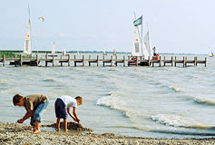 The town Podersdorf am See is a local center of tourism with generous bathing facilities. The shoreline around Podersdorf is one of the few parts of the Neusiedler See where access is not impeded by mud reed growth.