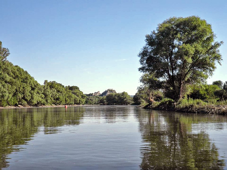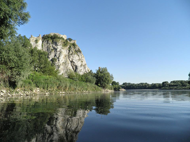 9 km. Danger: Input of the Morava River into the Danube causes extensive variation in flow pattern and creation of vortex. Keep paddling close to the left bank of the Danube below the Devin Castle. Experiences are needed to paddle in the fast Danube River stream.