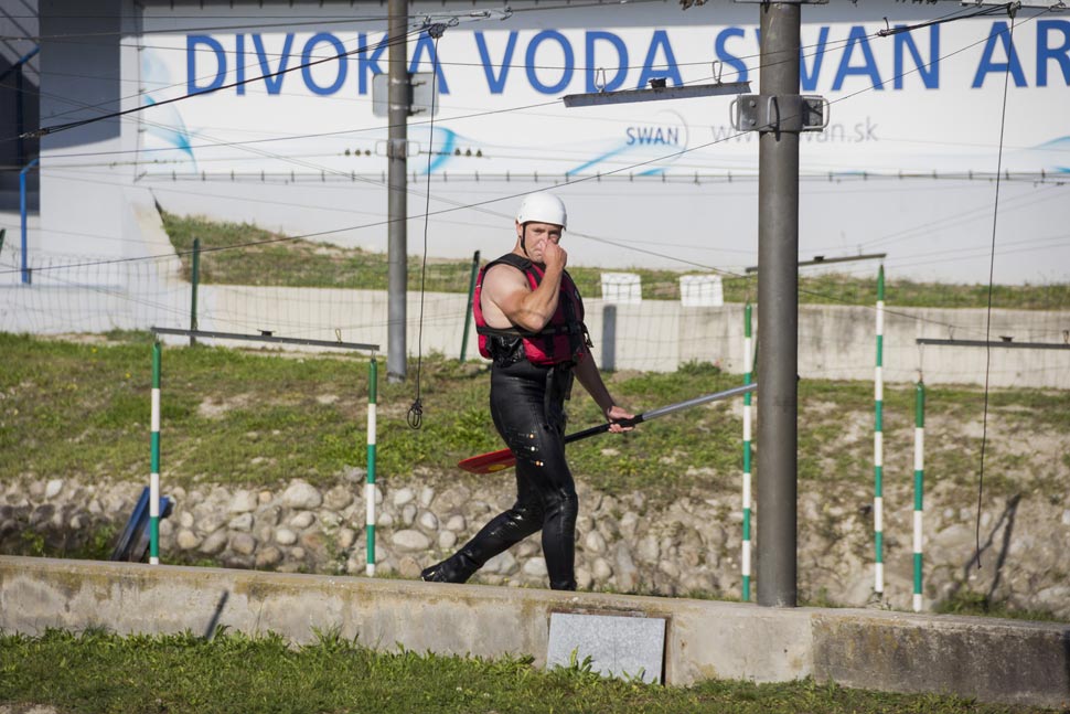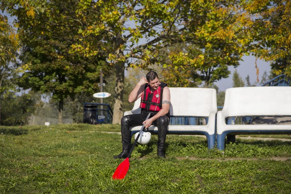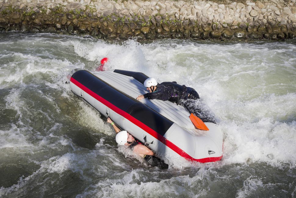 White water rafting in Cunovo, Danube River near Slovak capital Bratislava. Rafting boat can capsize and swimming experiences are useful.
