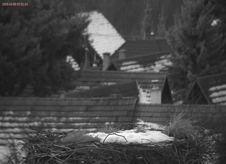 Ak bociany v hniezde nevidíte, tak šli loviť žaby. Posuňte si červeného bežca v ovládači videa a zistíte, pred koľkými minútami ešte boli doma.