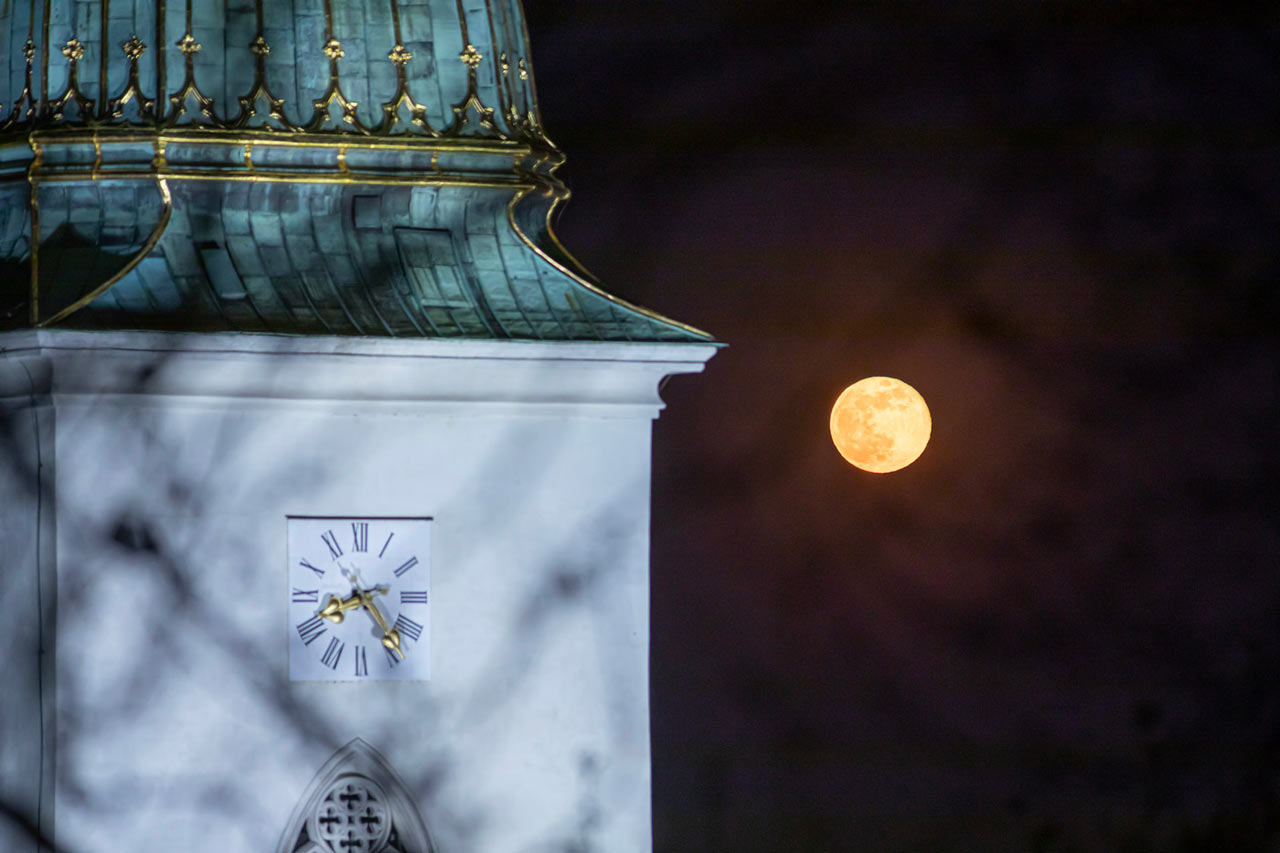 Mesiac a veža Katedrály Svätého Martina.