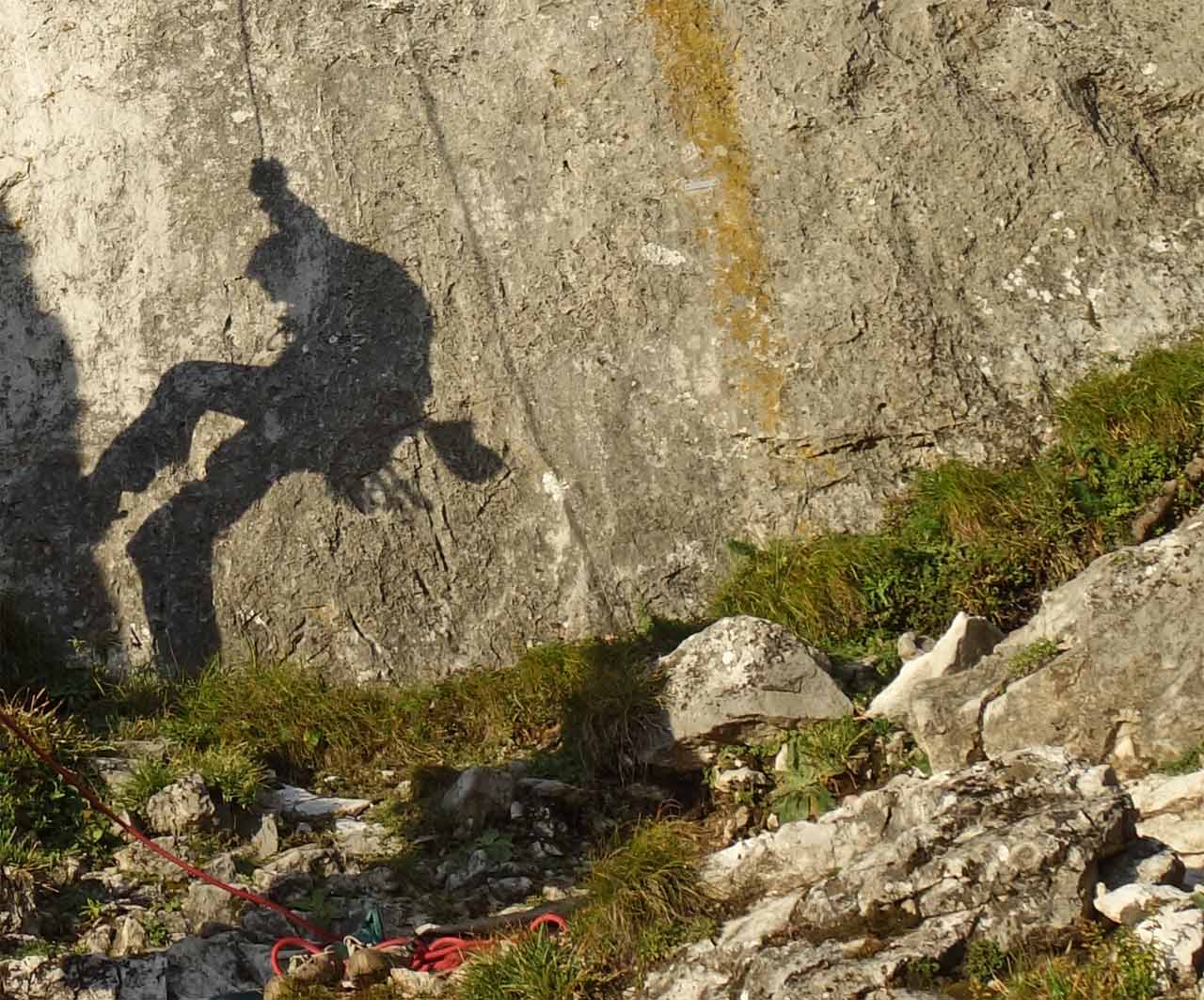 Duch Kršlenice sa zjavuje krátko pred západom slnka napravo od lezcov v sektore Hrad II na skalách v Kršlenici v Malých Karpatoch.