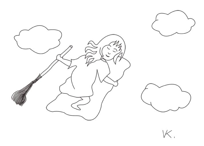 Striga Katarína sa na obláčikovej perine ešte zopár ráz popreháňala po oblohe a jej zlaté vlasy celkom prerazili hustú hmlu. Nad mestom sa zažalo. Katka zhodila perinu na zem a zoskočila dolu, do jej mäkkého náručia. Ach, ako sa v nej dobre spalo.