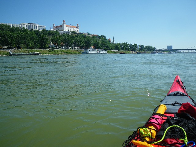 Vychutnávam si rýchlu plavbu po prúde cez mesto, Starý most už len ako piliere. Kdesi pri Rusovciach sa náhodne na kus cesty pripája Ivan z Hainburgu, ktorý má namierené na kajaku do Gabčíkova. Dáme sa do reči a Ivan ma varuje pred južnou časťou Neziderského jazera (Silber See), kde je prísna vtáčia rezervácia.