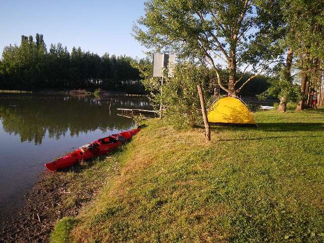 Ráno vstávam asi o 7:00 a v nasledujúcich dňoch budem tento čas stále zlepšovať. Ráno je krásne, robím si raňajky v pohodlí stola a lavičky. Najprv si ale rozcvičím chrbát, cítim sa výborne a teším sa na pokračovanie rieky, aj keď to dnes bude známa a jednoduchá trasa. Maďarskí vodáci, ktorých z videnia poznám z TIDky 2013 (Tour International Danubien - medzinárodné splavy Dunaja. Pozn. red.) mi núkajú pálinku a čudujú sa, že idem rovno z Bratislavy.