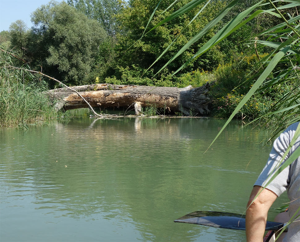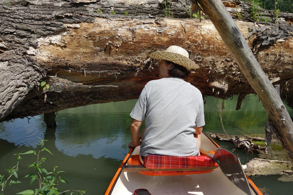 Jednou z posledných prekážok bol obrovský kmeň dunajského velikána. Našťastie medzi kmeňom a hladinou bol priestor, ktorým sa kánojka dala prestrčiť.