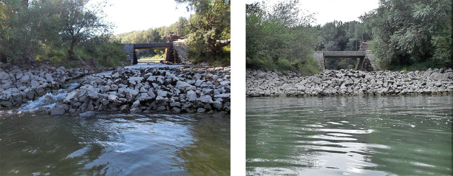 V Spittelauerskom ramene, ktoré vedie rovnobežne s hlavným tokom Dunaja, sme prevažne dnom lode neškŕkali o plytčiny, až pokým sme neprekonali prehrádzku, ktorá rameno predeľuje. Za ňou sme zbadali vysušené štrkové dno ramena. Museli sme prenášať. Trvalo to nejakú stovku metrov. Ale našťastie, dno je pevné, štrkové. V tomto úseku sme na krátkom úseku museli koníčkovať aj pri prvej návšteve ramena, keď bola hladina ešte vyššia.