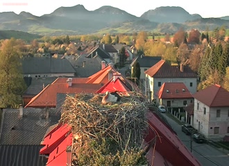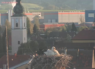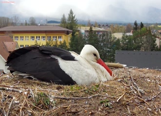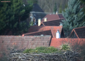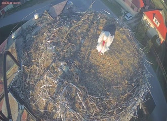 Ak bociany v hniezde nevidíte, tak šli loviť žaby. Posuňte si červeného bežca v ovládači videa a zistíte, pred koľkými minútami ešte boli doma.