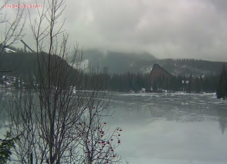 Štrbské Pleso - výhľad na jazero s panorámou