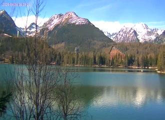 Štrbské Pleso - výhľad na jazero s panorámou