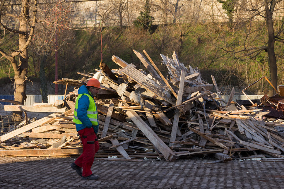 Demolition of former PKO (Park of Culture and Leisure) in Bratislava on January 15, 2016.