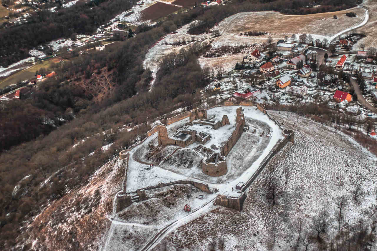 More than nine kilometers northwest of Bradlo, the ruins of Branc Castle stand on a hill above the village of Podbranc.