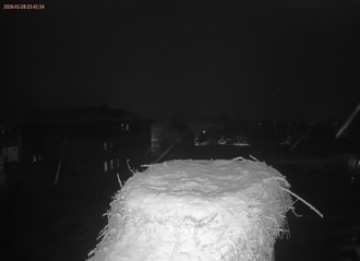Ak bociany v hniezde nevidíte, tak šli loviť žaby. Posuňte si červeného bežca v ovládači videa a zistíte, pred koľkými minútami ešte boli doma.