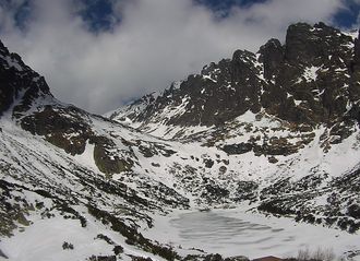 Smokovce - Velka Studena Dolina, Ladove Pleso Tarn (Zmarzly Staw), view to Maly Zavrat and Maly Javorovy Stit