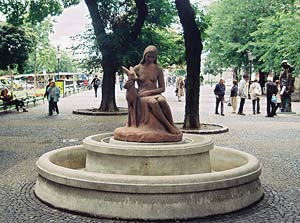 Fontánka vždy stála vo veľmi príjemnom prostredí. Krehko vyzerajúce súsošie aj dnes tienia stromy, ale prostredie už nie je také intímne, ako mi ho vykreslila teta Eva. Spomenula si aj na to, že povyše, pri Rybnom námestí bolo detské ihrisko s hojdačkami a malým plytkým bazénikom. Dnes sa stáva, že v týchto priestoroch sa tmolí oveľa viac turistov ako detí. Možno práve to spôsobilo, že mi nenapadlo spájať fontánku s rozprávkovým svetom. Ten opodiaľ zastupuje aj socha rozprávkara Hansa Christiana Andersena. Fontánové súsošie nie je však výjavom z niektorého jeho príbehu, ale z rozprávky bratov Grimmovcov o sestričke a bračekovi, premenenom na srnčeka. Aj napriek známemu motívu je fontána známa ako dievča so srnkou, a nie so srnčekom. Tak ju volá aj moja teta.