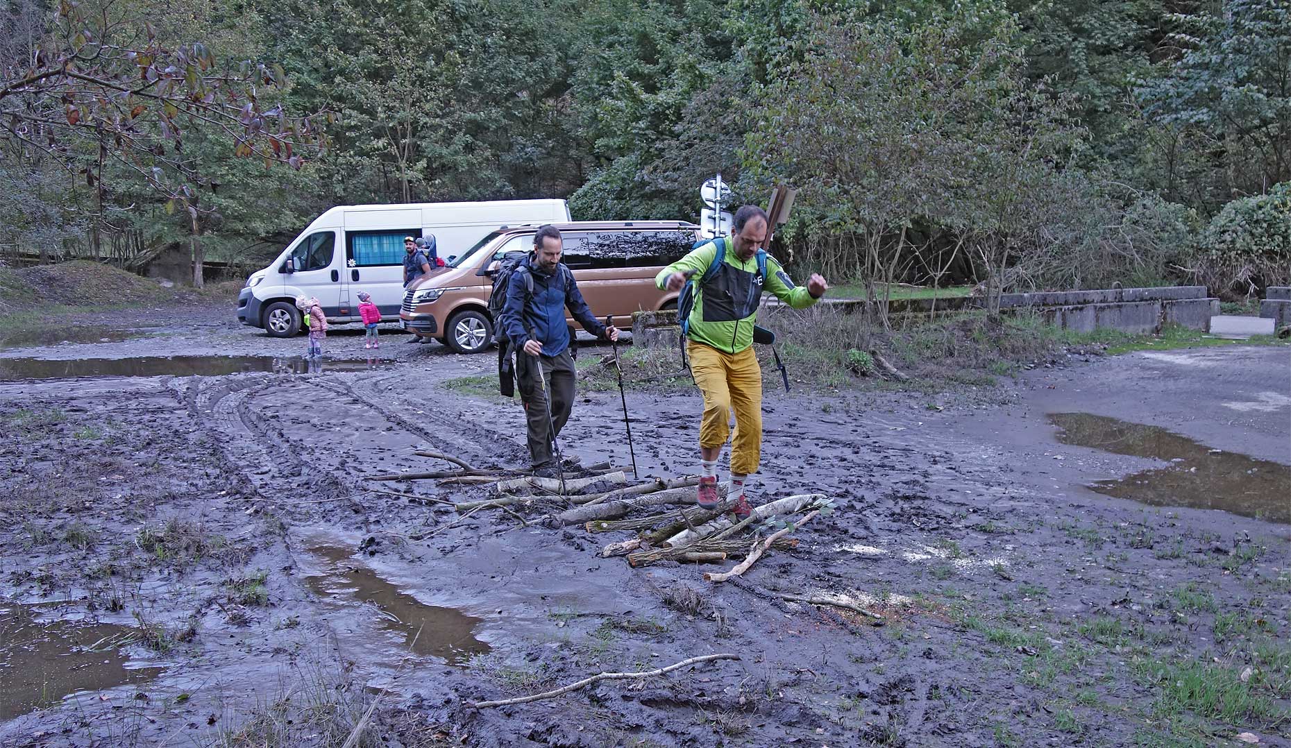 Ešte pred niekoľkými dňami sa autom nedalo dostať na parkovisko v kameňolome. 7. októbra už cesta bola opravená a je teraz v lepšom stave než pred záplavami.