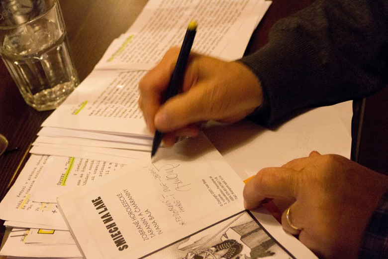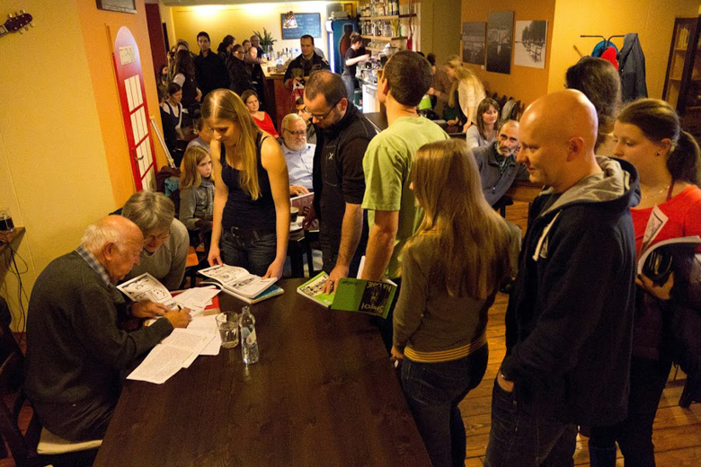 Pri príležitosti štvrtého vydania Smiechu na lane sme v Café Stena v Bratislave usporiadali 16. decembra 2012 autogramiádu Ivana Baja.