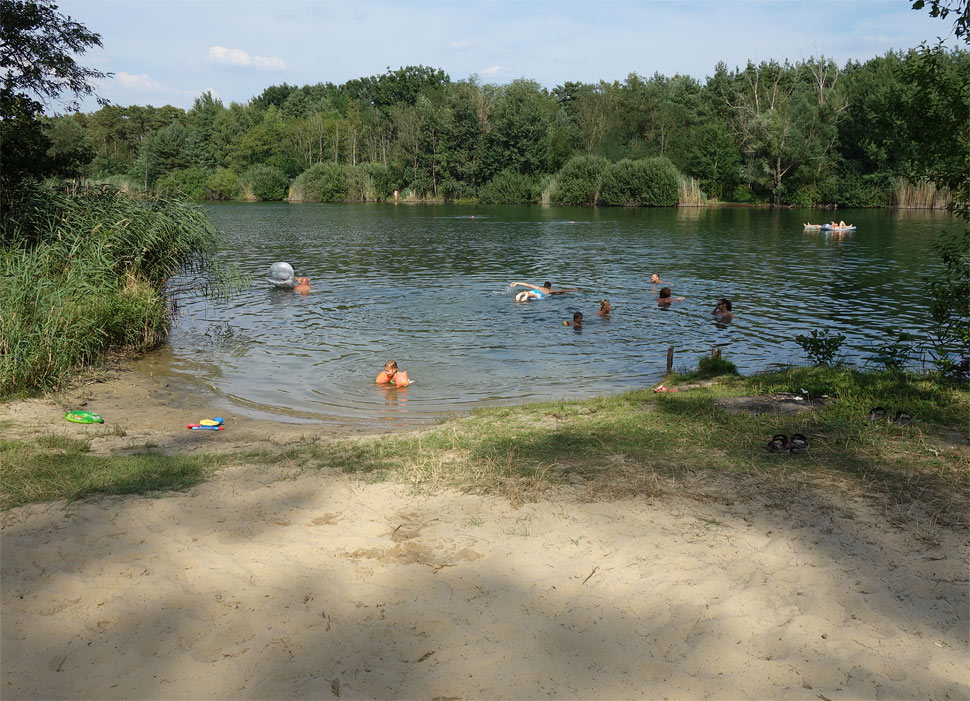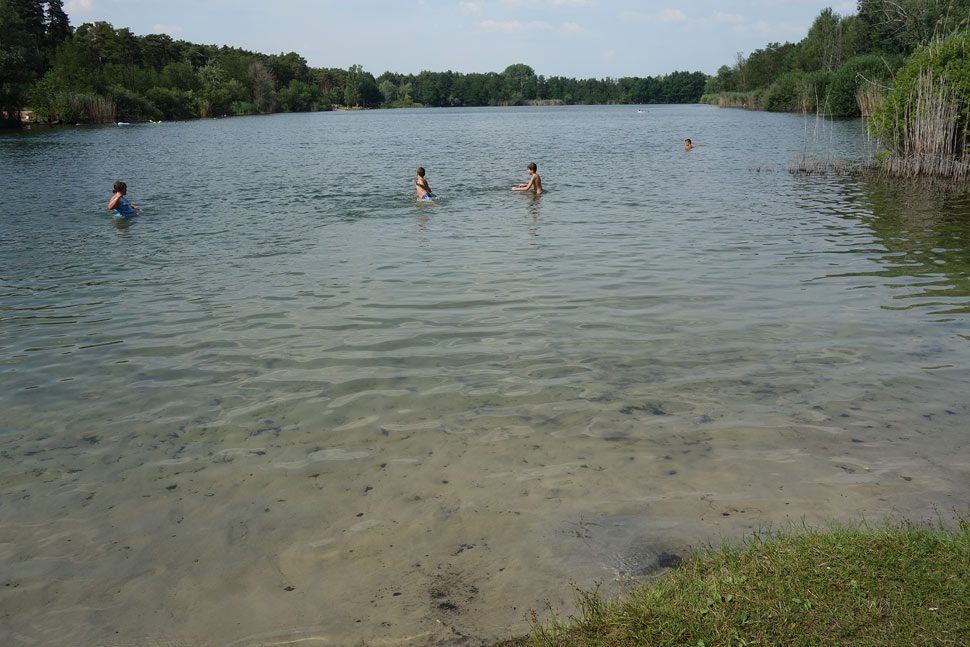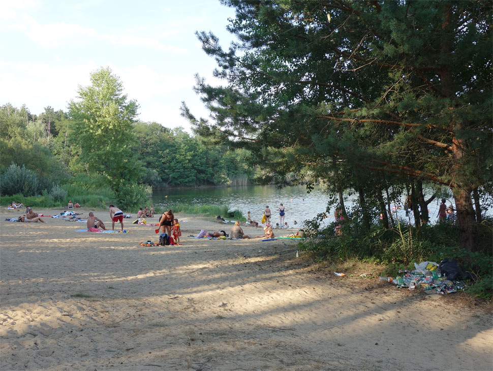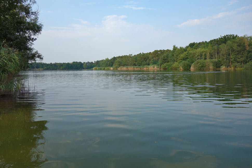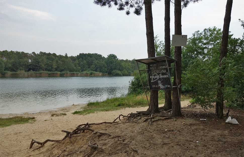 Za posledné roky okolo jazera pribudli chaty, ktorých majitelia na viacerých miestach prístup k jazeru zakazujú. Ale miesto na kúpanie pre verejnosť tam stále je. Čo nám vadilo viac, bolo, že na opačnej strane od trate bol neznesiteľný zápach - akoby po čistení žúmp. "Nepríjemná vôňa" iného druhu, nebol to ten spomínaný žumpový smrad, skôr akoby zo vzdialených poľnohospodárskych zariadení, sa vznášala aj nad celým jazerom... Možno by to domáci vedeli vysvetliť. Fúkal severozápadný vietor. Tieto čudné pachy nepochádzali z vody.