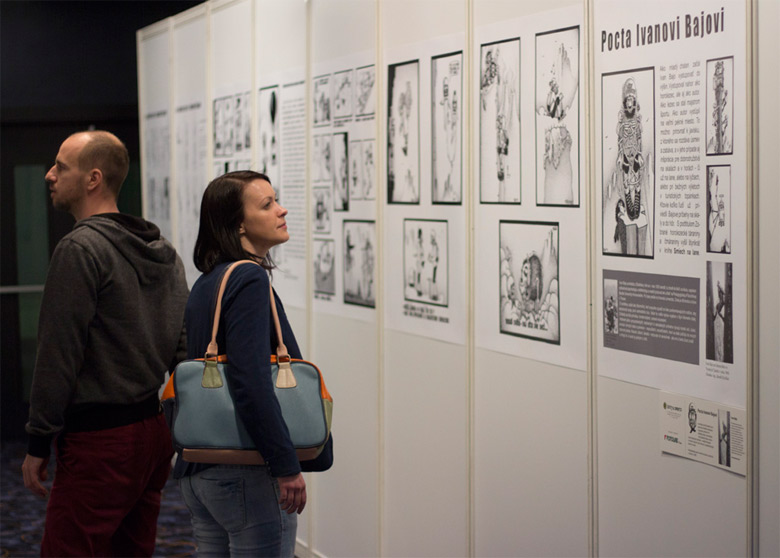 Výstavu kresleného humoru Pocta Ivanovi Bajovi nájdete v chodbe medzi kinosálami 1 a 2.