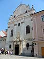 Trojloďový gotický kostol postavený na mieste pôvodného románskeho kostola. Začali ho stavať na začiatku 14. storočia, vysvätený bol v roku 1452. Pozoruhodné sú aj rozmery kostola: dĺžka 69,37 m, šírka 22,85 m, výška 16,02 m. Ku kostolu boli pristavané viaceré kaplnky – gotická kaplnka sv. Žofie, vdovy po českom kráľovi Václavovi IV., kaplnka sv. Anny a baroková kaplnka sv. Jána Almužníka.