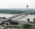 Pohľad z Bratislavského hradu na Nový most a Petržalku.