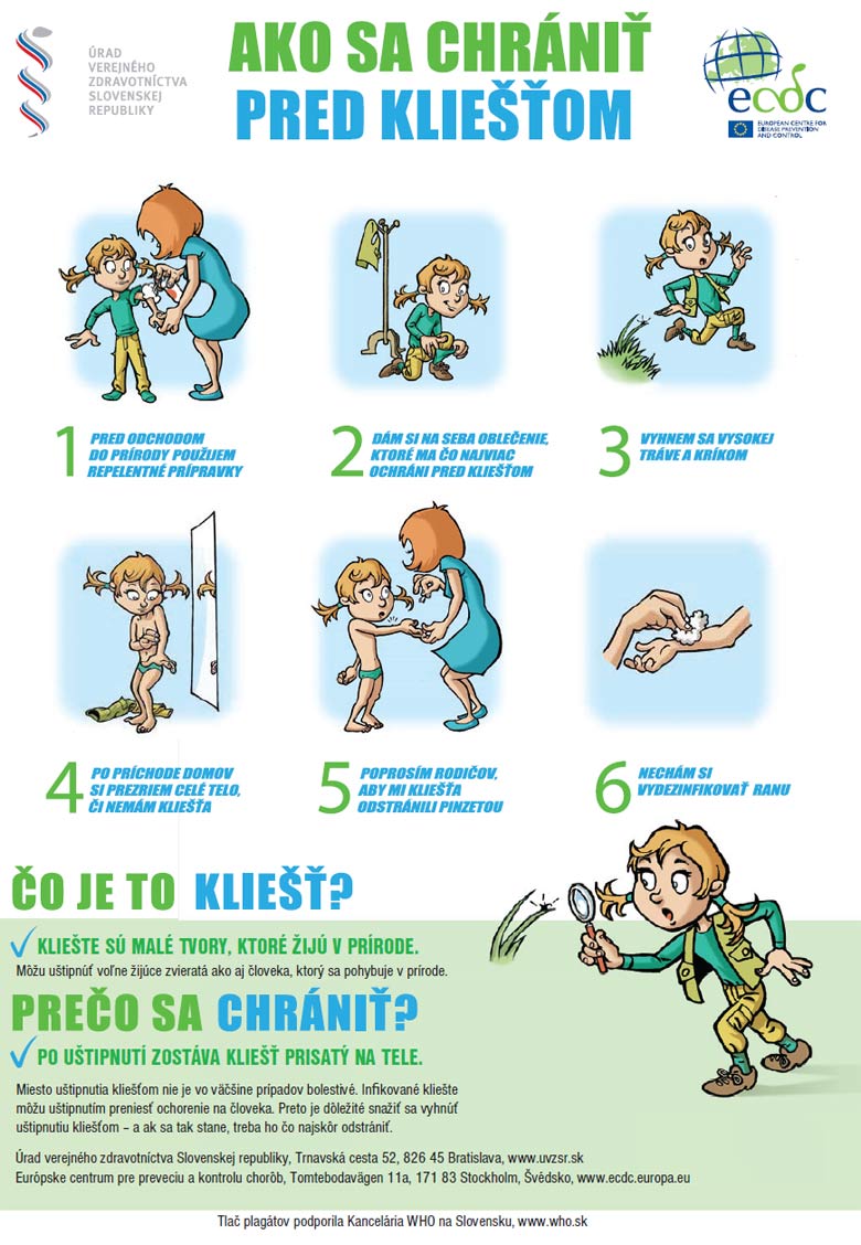 Pripájame náhľad zo zdravotníckeho letáku pre deti s radami, ako sa brániť pred kliešťami.